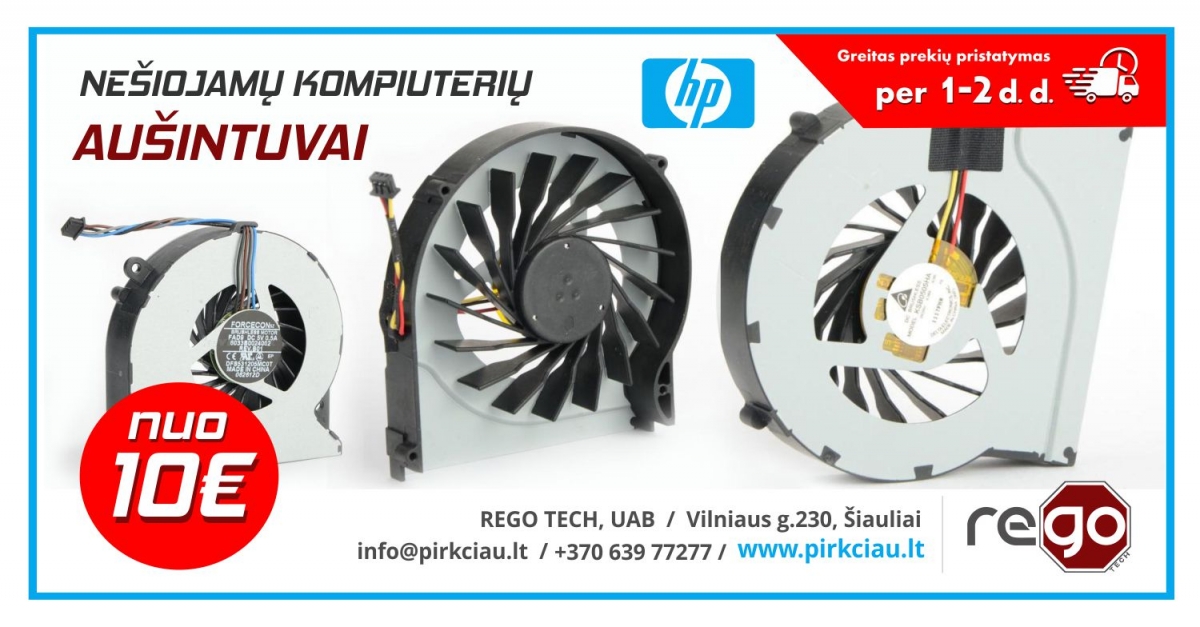 Aprašymas: | Nešiojamųjų kompiuterių aušintuvai, ventiliatoriai, dulkių valymas Pristatymas visoje Lietuvoje per 1–2 dienas; Visiems ventiliatoriams suteikiame garantiją; Padėsime išsirinkti ir sumontuosime; www.pirkciau.lt info@pirkciau.lt 863977277 UAB „Rego Tech“ prekiauja įvairių modelių nešiojamųjų kompiuterių ventiliatoriais, aušintuvais VISOJE Lietuvje. 1. HP ProBook 4410S | 4415S | 4416S | 4411S | 4510S 4515S | 4710S | UDQF2HR02C1N aušintuvas / ventiliatorius. KAINA 13Eur 2. HP PROBOOK 4320S | 4321S | 4326S | 4420S | 4421S | 4425S | 4426S 3PIN kompiuterio aušintuvas / ventiliatorius / fan. KAINA 15Eur 3. HP Probook 4440S | 4441S | 4445S | 4446S kompiuterio aušintuvas / ventiliatorius / fan. KAINA 13Eur 4. HP ProBook 4520 | 4520s | 4525 | 4525s | 4720 | 4720s kompiuterio aušintuvas / ventiliatorius / fan. KAINA 12Eur 5. HP Probook 4535S | 4730S | 8460P | 8450p | 8460p | 6460b | 6470B | 8460W | 4530S kompiuterio aušintuvas / ventiliatorius. KAINA 12Eur 6. HP Probook 4540 | 4540S | 4740s | 4745s | 4750S 683484-001 nešiojamo kompiuterio aušintuvas, ventiliatorius , fan. KAINA 13Eur 7. HP Pavilion G4-1010US | G4 | G4-1000 | G6-1000 | G7-1000 Serija kompiuterio aušintuvas / ventiliatorius. KAINA 12Eur 8. HP Pavilion G6-2000 | G6-2100 | G6-2200 | G7-2000, G7-6000 kompiuterio aušintuvas / ventiliatorius. KAINA 12Eur 9. HP Pavilion DV6Z-110 | DV6-1000 | DV6-1100 | DV6-1200 | DV6-1300 | HP DV7 | DV7-3000 | DV7-3100 kompiuterio aušintuvas. KAINA 13Eur 10. HP Pavilion DV6-2000 | DV6-2100 | DV6T-2000 | DV6T-2100 | DV6T-2300 kompiuterio aušintuvas / ventiliatorius. KAINA 13Eur 11. HP Pavilion DV6-6100 | DV6-6000 | DV6-6050 | DV6-6090 DV6-6000 | DV6-6200 kompiuterio aušintuvas / ventiliatorius. KAINA 14Eur 12. HP DV7 | DV7-1000 | DV7-1100 | DV7-1200 | DV7-2000 | DV7-1090 | DV7-1140EW | 480481-001 2 PINAI kompiuterio aušintuvas. KAINA 12Eur 13. HP DV7 | DV7-1000 | DV7-1100 | DV7-1200 | DV7-2000 | DV7-4000 | DV7T-4100 3 PINAI kompiuterio aušintuvas / ventiliatorius. KAINA 12Eur 14. HP DV7-4000 | DV7-4010SG | DV7-4100 | DV7-4102EG | DV7-4301SG | 610777-001 kompiuterio aušintuvas / ventiliatorius. KAINA 15Eur 15. HP Pavilion DV5000 | DV5100 | DV5200 | DV8000 | DV8200 | DV8400 | C500 | C300 kompiuterio aušintuvas / ventiliatorius. KAINA 13Eur 16. HP Pavilion DV6000 | DV6100 | DV6200 | DV6500 | DV6700 | DV6800 kompiuterio aušintuvas / ventiliatorius. KAINA 13Eur 17. HP DV4 | DV5 | CQ40 | CQ41 | CQ45 | DV4-1000 | DV4Z, DV4T kompiuterio aušintuvas / ventiliatorius. KAINA 11Eur 18. HP Compaq Presario DV4 | CQ40 | CQ45 | CQ41 | CQ43 | DV4-1000 | CQ40-710BR | CQ40-711BR kompiuterio aušintuvas / ventiliatorius.KAINA 10Eur 19. HP Compaq CQ50 | CQ60 | G50 | G60 | CQ60-200 | CQ60-100 | CQ70 kompiuterio aušintuvas / ventiliatorius. KAINA 11Eur 20. HP Compaq CQ50 | CQ60 | G50 | G60 AMD 489126-001 KSB05105HA-8G99 kompiuterio aušintuvas / ventiliatorius. KAINA 12Eur 21. HP Compaq Presario G62 | G42 | CQ42 | CQ56 | CQ56z | CQ62 | CQ72 | G72 3 PIN kompiuterio aušintuvas / ventiliatorius. KAINA 12Eur 22. HP Compaq Presario G62 | G42 | CQ42 | CQ56 | CQ56z | CQ62 | CQ72 | G72 4 PIN kompiuterio aušintuvas / ventiliatorius. KAINA 12Eur 23. HP Presario CQ61 | G61 | G61-100 | G71 | CQ71 | CQ70 kompiuterio aušintuvas / ventiliatorius. KAINA 13Eur 24. HP Compaq G43 | G57 | CQ43 | CQ57 | 430 | 431 | 435 | 436 | 630 kompiuterio aušintuvas / ventiliatorius. KAINA 14Eur 25. HP Compaq G72 | CQ72 | G62 | CQ62 | G56 | CQ56 | G42 / CQ42 kompiuterio aušintuvas / ventiliatorius. KAINA 10Eur 26. HP COMPAQ CQ58 | G58 | 650 | 655 | CQ58-100 | CQ58-200 | CQ58-300 kompiuterio aušintuvas / ventiliatorius. KAINA 12Eur 27. HP Compaq 6510B | 6515B | 6520S | 6710b | 6710s | 6715b | 6530B | 6520S | 6530S | 6531S kompiuterio aušintuvas / ventiliatorius. KAINA 16Eur 28. HP EliteBook 6930P | 6930 | 8530 | 8530p | 8530w kompiuterio aušintuvas / ventiliatorius. KAINA 14Eur 29. HP EliteBook 8530w, 8530, 8530p, 69030G kompiuterio aušintuvas / ventiliatorius. KAINA 14Eur 30. HP ProBook 450 G1 | 450G1 | 455 G1 | 455G1 | 470G0 | 470G1 | 470 G1 kompiuterio aušintuvas / ventiliatorius. KAINA 13Eur 31. HP Pavilion 15-N | 15-N000 | 15-N100 | 15-N200 | 15-N | 14-N000 | 14-N200 | 14-N kompiuterio aušintuvas / ventiliatorius. KAINA 13Eur 32. HP 15-G000 | 15-G100 | 15-R000 | 15-R100 kompiuterio aušintuvas / ventiliatorius. KAINA 13Eur 33. HP Probook 440 G2 | 445 G2 | 450 G2 | 455 G2 kompiuterio aušintuvas / ventiliatorius. KAINA 18Eur 34. HP EliteBook 8560B | 8560P | 8560W | 8570P | 6560B | 6565B | HP Probook 6570B kompiuterio aušintuvas / ventiliatorius. KAINA 18Eur 35. HP Pavillion 15 | 15E | 15-E | 17 | 17E | 17-E kompiuterio aušintuvas, ventiliatorius. KAINA 13Eur 36. HP ProBook 340 G1 | 340 G2 |345 G2 | 350 G1 |350 G2 | 355 G2 kompiuterio aušintuvas / ventiliatorius. KAINA 14Eur 37. HP ProBook 6560 | 6560b | 6065B | 8560 | 8560B | 8560W | 8560P kompiuterio aušintuvas / ventiliatorius. KAINA 18Eur 39. HP ProBook 445 | 450 | 450G1 | 450G0 | 450G1 | 455G1 kompiuterio aušintuvas / ventiliatorius. KAINA 16Eur 40. HP DV6-7000 | DV6T-7000 | DV7-7000 | 682061-001 | 682179-001 kompiuterio aušintuvas / ventiliatorius. KAINA 13Eur 41. HP 15-a | 15-ac | 15-ac136ds | 15-ac121dx | 15-ac142dx | 15-ac123ds | 15-A kompiuterio aušintuvas / ventiliatorius. KAINA 18Eur 42. HP ProBook 430 G1 | 430G1 | 470 727766-001 kompiuterio aušintuvas / ventiliatorius. KAINA 20Eur |
