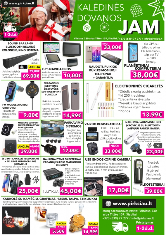Aprašymas: | Kalėdinių dovanų įdėjos JAM! Sound bar LP-09 Bluetooth belaidė kolonėlė, kino sistema Kaina: 69 Eur GPS navigacijos nuo 10 Eur! Naudoti, puikios būklės mobilieji telefonai + GARANTIJA! Nuo: 33 Eur Planšetiniai kompiuteriai nuo 38 Eur! FM moduliatoriai, grotuvai nuo 9 Eur! Prabangus elektrinis žiebtuvėlis su fingerprint funkcija Kaina: 14,99 Eur Elektroninės cigaretės Kaina: 13,99 Eur Mingling comfort bluetooth laisvųjų rankų įranga Kaina: 39 Eur Parkavimo sistemos nuo 17 Eur! Vaizdo registratoriai nuo 33 Eur! NAUJIENA! Automobilinis įkroviklis su bluetooth laisvųjų rankų įranga Kaina: 23 Eur S5 2 in 1 laikiklis telefonams + belaidis automobilinis įkroviklis Kaina: 25 Eur NAUJIENA! TPMS 08 EXTERNAL padangų slėgio matuoklio rinkinys Kaina: 45 Eur USB endoskopinė kamera Kaina: 17 Eur Alkotesteriai nuo 39 Eur! Kaukolė su kamsčiu, grafinas, 125 ml talpa Kaina: 14,99 Eur Stikliukai Kaina: 5,50 Eur Apsilankyk: http://pirkciau.lt Pristatymas visoje Lietuvoje per 1-2 d.d. Vilniaus 230 arba Tilžės 107, Šiauliai +37063977277 |