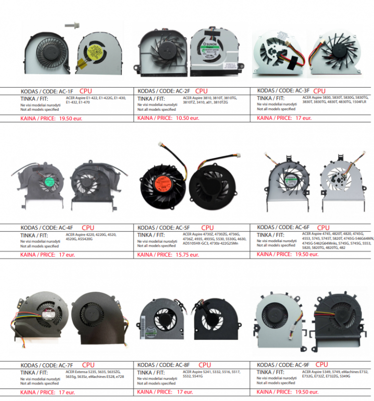 | Aprašymas: | PIGIAUSIAI. Acer nešiojamų kompiuterių ekranų AUŠINTUVAI PIGIAUSIAI. Acer nešiojamų kompiuterių ekranų AUŠINTUVAI Pristatymas visoje Lietuvoje per 1-2 d.d. (DPD kurjeriu, paštomatu, paštu, galima atsiimti vietoje). Suteikiama garantija 12 mėnesių. Visa konsultacija, remonto darbų užsakymas: +37063977277 / info@marsietis.lt / Vilniaus 230, Šiauliai Daugiau informacijos: www.marsietis.lt 1. (AC-1F) ACER Aspire E1-422, E1-422G, E1-430, E1-432, E1-470, E1-522, MS2372, E1-430P, E1-472G, E1-470G, E1-472, E1-432G, E1-470, E1-470P, E1-522. Kaina 19.50 eur. 2. (AC-2F) ACER Aspire 3810, 3810T, 3810TG, 3810TZ, 3410, a01, 3810TZG. Kaina 10.50 eur. 3. (AC-3F) ACER Aspire 5830, 5830T, 5830T-2314G50Mnbb, 5830G, 5830TG, 3830T, 3830TG, 4830T, 4830TG, 1504FLR. Kaina 10.50 eur. 4. (AC-4F) ACER Aspire 4220, 4220G, 4520, 4520G, AS5420G. Kaina 17 eur. 5. (AC-5F) ACER Aspire 4730Z, 4730ZG, 4736G, 4736Z, 4935, 4935G, 5530, 5530G, 4630, AD5105HX-GC3, 4730z-422G25Mn, 4730Z-4631, 4930-581G16L, YAM3, 4730, 5732, 5732z, 2930, 4730Z. Kaina 15.75 eur. 6. (AC-6F) ACER Aspire 4745, 4820T, 4820, 4745G, 4553, 5745, 5745T, 5820T, 4745G-546G64MN, 4745G-5462G64Mnks, 5745G, 5745G, 5553, 5820, 5820TG, 4820TG, 4820. Kaina 19.50 eur. 7. (AC-7F) ACER Extensa 5235, 5635, 5635ZG, 5635g, 5635z, eMachines E528, e728. Kaina 17 eur. 8. (AC-8F) ACER Aspire 5241, 5332, 5516, 5517, 5532, 5541G, 5732, 5542-304G50MN, 5542-504G50MN, 5542-5206, 5542-5241, 5542-5416, 5542-5206, 5542-5241, 5542-5416, 4741-5241, emachines g627, 5732Z, 5732ZG, eMachines G630, E525, G625, G727, E727, E725, D520, E627, 4741, 4741-3435, 4741-3510, 4741-3729, 4741-3902, 4741-5795, 4741-5885, 4741-5888, 4741-5954, 4741-5972, 4741-5974, 4741-6531, 4741-6628, 4741-6847, 4741G, 4741G-332G32MN, 4551, 4551-2194, 4551-2265, 4551-2302, 4551-2346, 4551-2411, 4551-2522, 4551-2539, 4551-2584, 4551-2615, 4551-2715, 4551-2728, 4551-2766, 4551-2820, 4551-321G32L, 4551-4315, 4551G, 4551G-N331G50MNSK, 4551G-N832G64MNSK, 4551-P321G32MNSK, 4551-P322G32MN, 4741-5066, 4741-5115, 4741-5147, 4741-5150, 4741-5177, 4741-5241, 4741-5322, 4741-5333, 4741-5341, 4741-5462, 4741-5473, 4741-5512, 4741-5578, 4741-5655, Acer Aspire 5532 5541 5332 5732 5732Z 5734 5734Z eMachines E627 E725. Kaina 17 eur. 9. (AC-9F) ACER Aspire 5349, 5749, eMachines E732, E732G, E732Z, E732ZG, 5349G, 5349Z, 5349ZG, 5749, 5749Z, 5749G, 5749ZG, 5749-6492 ACER ASPIRE 5349 ACER ASPIRE 5349Z ACER ASPIRE 5749 ACER ASPIRE 5749Z ACER ASPIRE 5349-2481 ACER ASPIRE 5749-6492 ACER ASPIRE 5749-6413 ACER ASPIRE 5749Z-4478 ACER ASPIRE 5749-6474 ACER ASPIRE 5749-6663 ACER ASPIRE 5749z-b964g50mnkk ACER ASPIRE 5349-2620 ACER ASPIRE 5349-2164 ACER ASPIRE 5349-2635 ACER ASPIRE 5749z-b954g32mikk ACER ASPIRE 5749Z-B964G75Mnkk ACER ASPIRE 5749-6863 ACER ASPIRE 5749-2353G50Mnkk. Kaina 19.50 eur. 10. (AC-10F) ACER Aspire 5530, 7739, 7739G, 7739ZG, 4730, 5530, 5530-603G25Mi Extensa 4230, 4630, 4630Z, 4630G , 5530g, 7715z, 5530-603g25mi. Kaina 17 eur. 11. (AS-11S) ACER Aspire 5536, 5536G, 5738, 5338, MS2264, 5738Z, 5738P, 5738D, 5738ZG, MS2264, Acer Aspire 5236 Acer Aspire 5336 Acer Aspire 5338 Acer Aspire 5338 Serie Acer Aspire 5340 Acer Aspire 5536 Acer Aspire 5536 Serie Acer Aspire 5536G Acer Aspire 5542 Acer Aspire 5738 Acer Aspire 5738-4354 Acer Aspire 5738-5338 Acer Aspire 5738-6252 Acer Aspire 5738-6296 Acer Aspire 5738-6326 Acer Aspire 5738-6359 Acer Aspire 5738-6421 Acer Aspire 5738-6444 Acer Aspire 5738-6488 Acer Aspire 5738-6520 Acer Aspire 5738-653G32MN Acer Aspire 5738-654G50MN Acer Aspire 5738-6580 Acer Aspire 5738-663G32MN Acer Aspire 5738-664G50MN Acer Aspire 5738-6744 Acer Aspire 5738-6753 Acer Aspire 5738-6853 Acer Aspire 5738-6922 Acer Aspire 5738-6969 Acer Aspire 5738-6973 Acer Aspire 5738-6993 Acer Aspire 5738D Acer Aspire 5738DG Acer Aspire 5738DG-6165 Acer Aspire 5738DG-6925 Acer Aspire 5738DZG Acer Aspire 5738DZG-4103 Acer Aspire 5738G Acer Aspire 5738G-6335 Acer Aspire 5738G-642G32MNB Acer Aspire 5738G-643G32MN Acer Aspire 5738G-644G32BN Acer Aspire 5738G-644G32MN Acer Aspire 5738G-644G50MN Acer Aspire 5738G-653G25MN Acer Aspire 5738G-654G32MN Acer Aspire 5738G-654G50MN Acer Aspire 5738G-664G32MN Acer Aspire 5738G-664G50MN Acer Aspire 5738G-734G50MN Acer Aspire 5738G-744G50MN Acer Aspire 5738P Acer Aspire 5738PG Acer Aspire 5738PG-6306 Acer Aspire 5738PG-644G32MN Acer Aspire 5738PG-6555 Acer Aspire 5738PG-664G50MN Acer Aspire 5738PG-874G50BN Acer Aspire 5738PZ Acer Aspire 5738PZG Acer Aspire 5738Z Acer Aspire 5738Z-4025 Acer Aspire 5738Z-4055 Acer Aspire 5738Z-4087 Acer Aspire 5738Z-4102 Acer Aspire 5738Z-4111 Acer Aspire 5738Z-4154 Acer Aspire 5738Z-4208 Acer Aspire 5738Z-422G32MN Acer Aspire 5738Z-423G16MN Acer Aspire 5738Z-423G25MN Acer Aspire 5738Z-423G32MN Acer Aspire 5738Z-424G32MN Acer Aspire 5738Z-424G50MN Acer Aspire 5738Z-4297 Acer Aspire 5738Z-4324 Acer Aspire 5738Z-4333 Acer Aspire 5738Z-433G16MN Acer Aspire 5738Z-433G25MN Acer Aspire 5738Z-434G50MN Acer Aspire 5738Z-4369 Acer Aspire 5738Z-4372 Acer Aspire 5738Z-4499 Acer Aspire 5738Z-4510 Acer Aspire 5738Z-4534 Acer Aspire 5738Z-4574 Acer Aspire 5738Z-46335 Acer Aspire 5738Z-4853 Acer Aspire 5738Z-7823 Acer Aspire 5738ZG Acer Aspire 5738ZG-422G32MNA Acer Aspire 5738ZG-423G25MN Acer Aspire 5738ZG-424G25MN Acer Aspire 5738ZG-424G32MN Acer Aspire 5738ZG-424G50MN Acer Aspire 5738ZG-433G25MN Acer Aspire 5738ZG-434G32MN Acer Aspire 5738ZG-434G50MN Acer Aspire 5740 Acer Aspire 5740DG Acer Aspire 7540 NV52 gateway NV53 gateway NV54 gateway Gateway NV56 NV58 gateway MS2264 NV52 Series NV53 Series NV54 Series NV56 Series NV58 Series Packard Bell EasyNote TJ61 Packard Bell EasyNote TJ65 Packard Bell EasyNote TJ66 Packard Bell EasyNote TJ67 Packard Bell EasyNote TJ71 Packard Bell EasyNote TJ74. Kaina 14.50 eur. 12. (AC-12F) ACER Aspire 5740, 5740g, 5741, 5741g, 5742, 5742G, 5742Z, 5551, 5551G, 5552G, 5252, 5336, 5736, NV53, NV59, 5740G-6395, 5740G-6979, 5542ANWXMI, 5740dg, 5340, 5340g, 5340dg, 5542g, 5552, 5251, 5252. Kaina 16 eur. 13. 