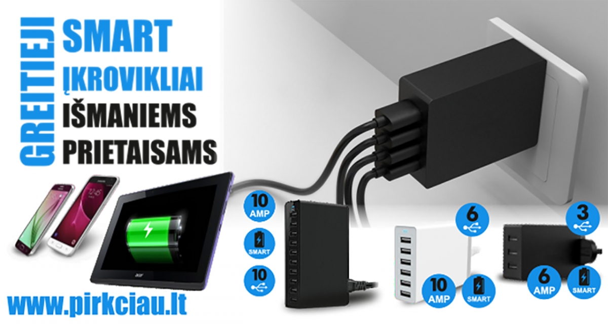 Pavadinimas: | SMART telefonų, planšetų tinklo įkrovikliai |
