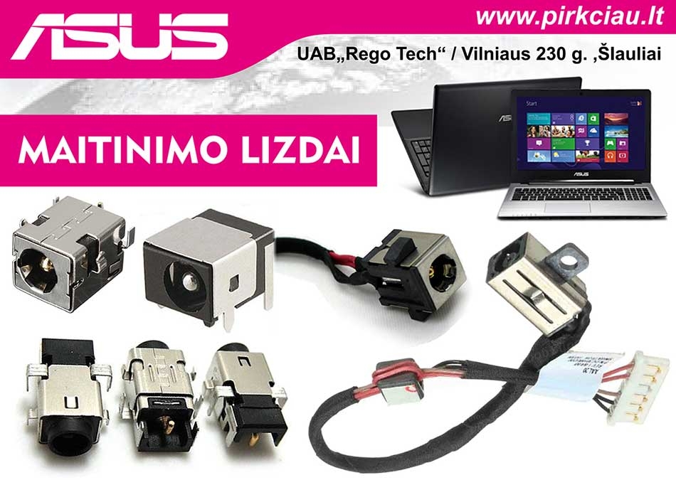 ASUS maitinimo lizdai, turime PILNA ĮVAIRIAUSIŲ MODELIŲ, platus pasirinkimas. Maitinimo lizdams skiriame 3 MĖNESIŲ GARANTIJĄ!